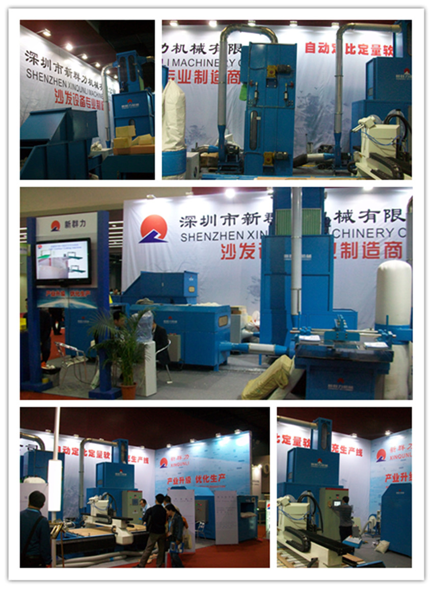 在展會中,我司展出了最新推出的裁板機(jī)、全自動大批量枕頭(抱枕)生產(chǎn)線、重新改良的ESF001D坐墊填充機(jī)以及ESF007-3帶有三把刀的海綿切粒機(jī)。吸引了來至國內(nèi)外眾多客戶前來參觀。